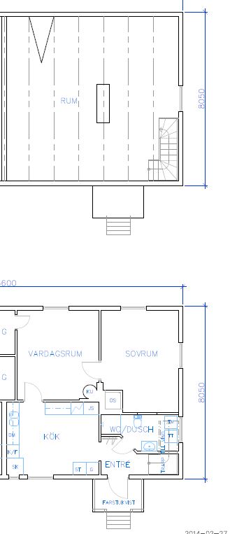 Till höger i entrén finns en trapp som leder upp till ovanvåningen. Ovanvåningen består av ett stort allrum som kretsar kring en murstock. Allrummet kn användas som sovrum eller vardagsrum eller en kombination av båda. Här kan man också få plats med en kontorshörna och en mysig läshörna. Ett burspråk ger ett naturligt ljusinsläpp. Ett stort fönster mot söder ger utsikt över den gamla slottsträdgården.