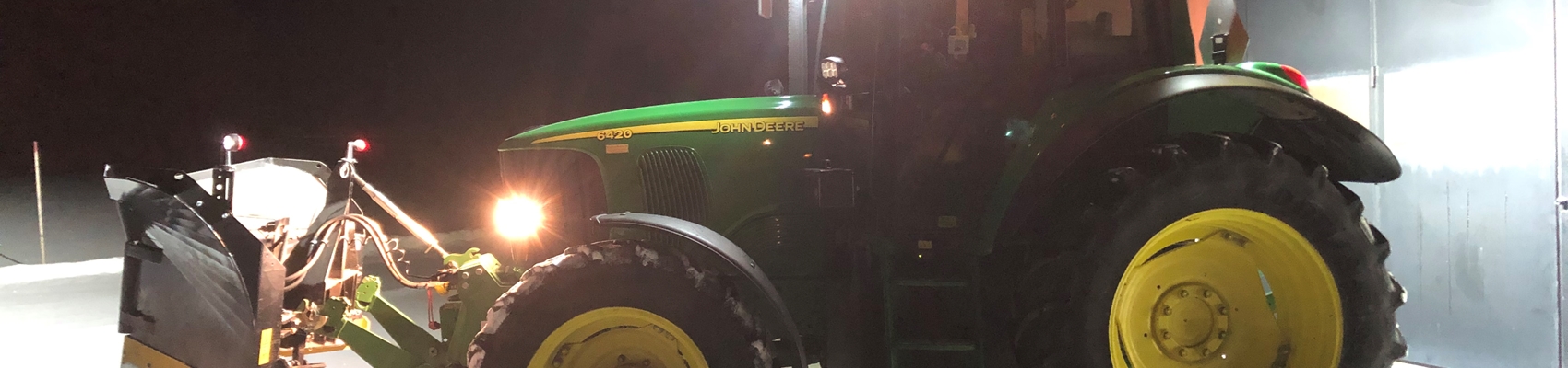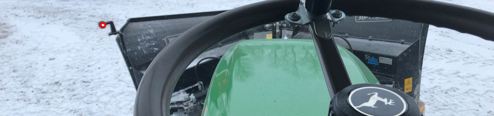 Under vintern röjer vi snö åt bland annat lokala vägsamfälligheter. Snöröjningen sker med traktor och vikplog.